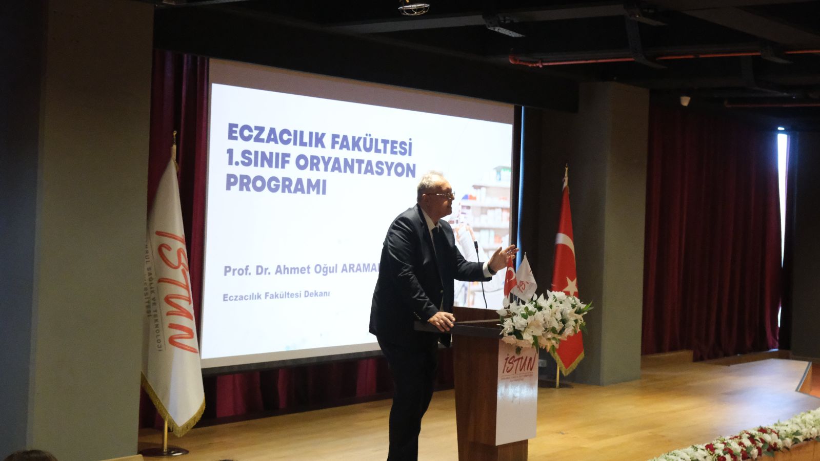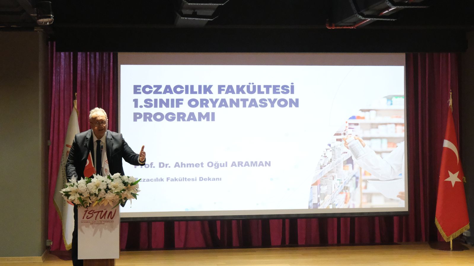 Üniversitemiz Rektörü Prof. Dr. Buğra Özen'in açılış konuşması yaparken öğrencilere başarı dileklerini iletti. Eczacılık Fakültesi Dekanı Prof. Dr. Ahmet Oğul Araman, öğrencilere fakültenin akademik vizyonu ve eğitim anlayışı hakkında bilgi verdi. Programda, Eczacılık Fakültesi Fakülte Dekan Yardımcısı Doç. Dr. Samet Özdemir açılış konuşmasıyla yer aldı ve öğrencilere yönelik sunumunu gerçekleştirdi.