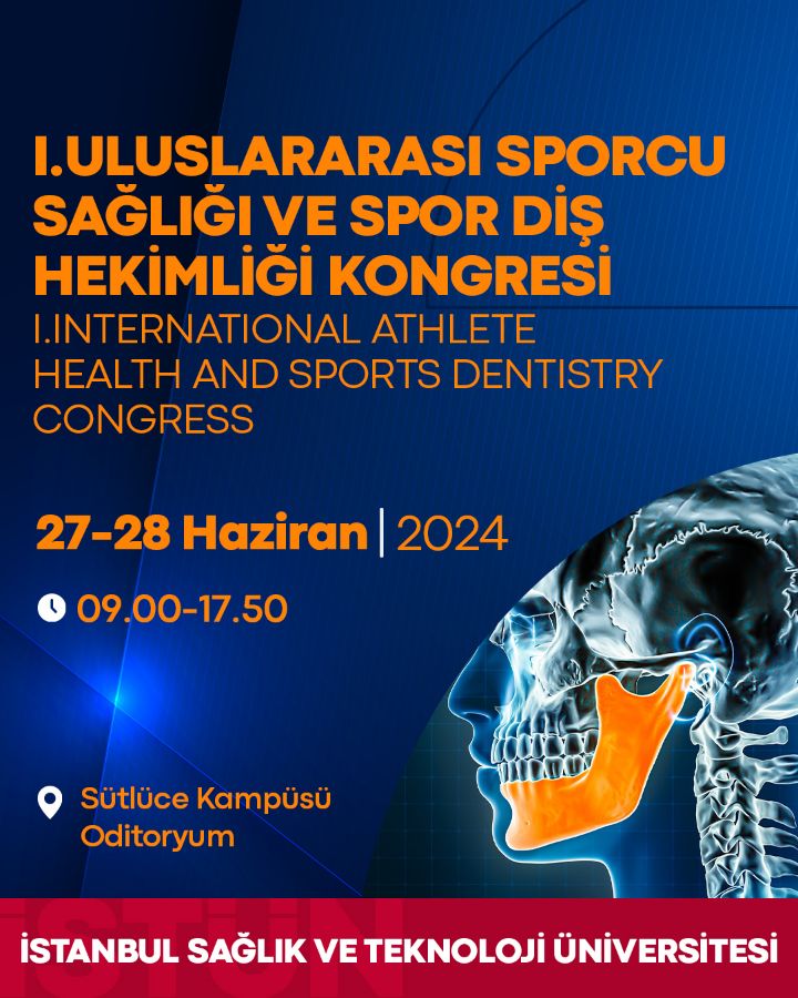 1. Uluslararası Sporcu Sağlığı ve Spor Diş Hekimliği Kongresi'ne 27-28 Haziran tarihlerinde İstanbul Sağlık ve Teknoloji Üniversitesi Sütlüce Yerleşkesi Oditoryum'da gerçekleştirilecektir.