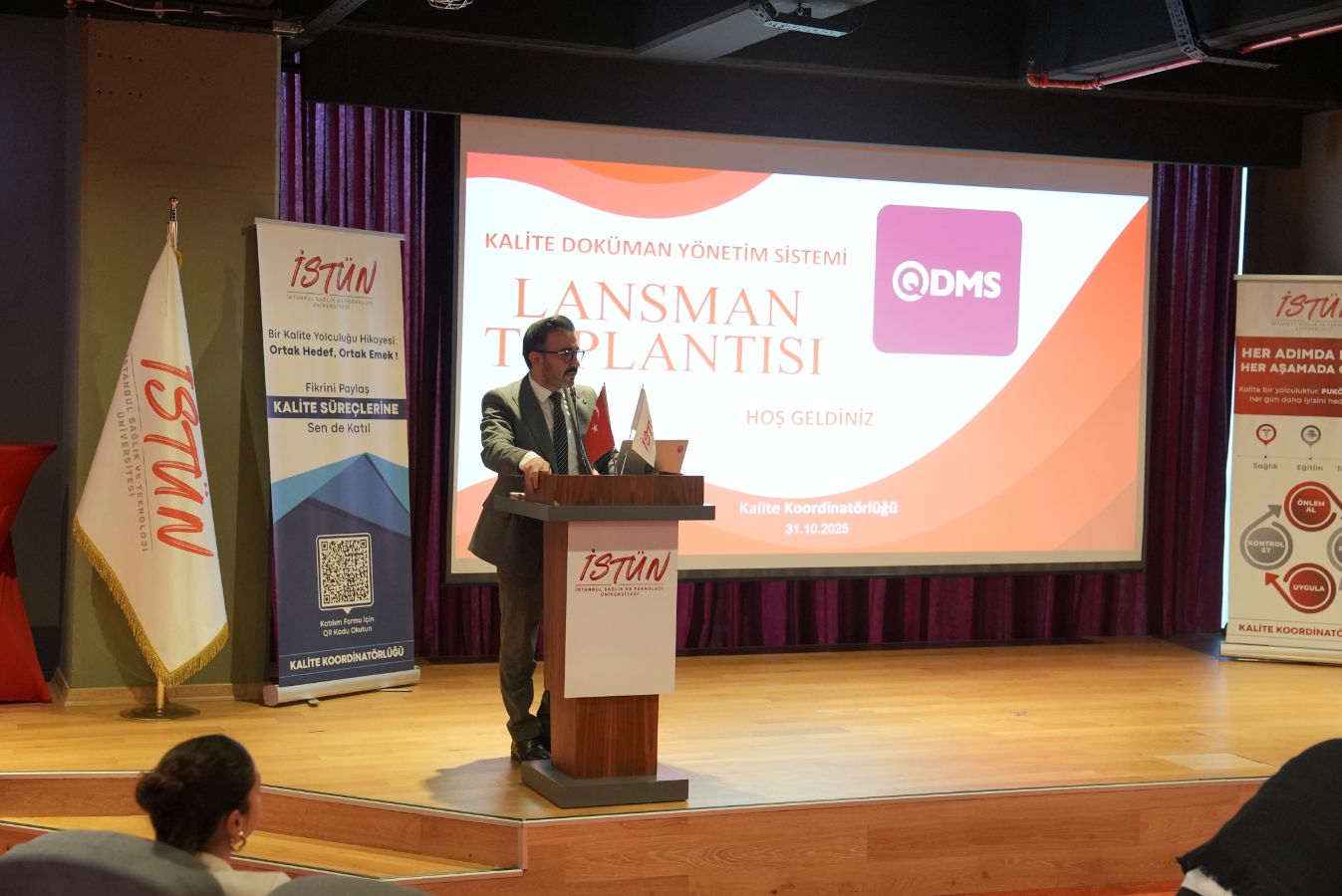 Kalite yönetim süreçlerinin dijital dönüşümünü desteklemek amacıyla QDMS Entegre Yönetim Sistemi Yazılımı Tanıtım Toplantısı gerçekleştirildi. Genel Sekreter Mesut İmamoğlu'nun açılış konuşması ile başlayan toplantıya akademik ve idari personel yoğun ilgi gösterdi. Kalite Koordinatörlüğü tarafından düzenlenen etkinlikte, QDMS yazılımının üniversite genelinde kullanım alanları, sağladığı kolaylıklar ve kalite süreçlerine olan katkıları detaylı biçimde tanıtıldı.