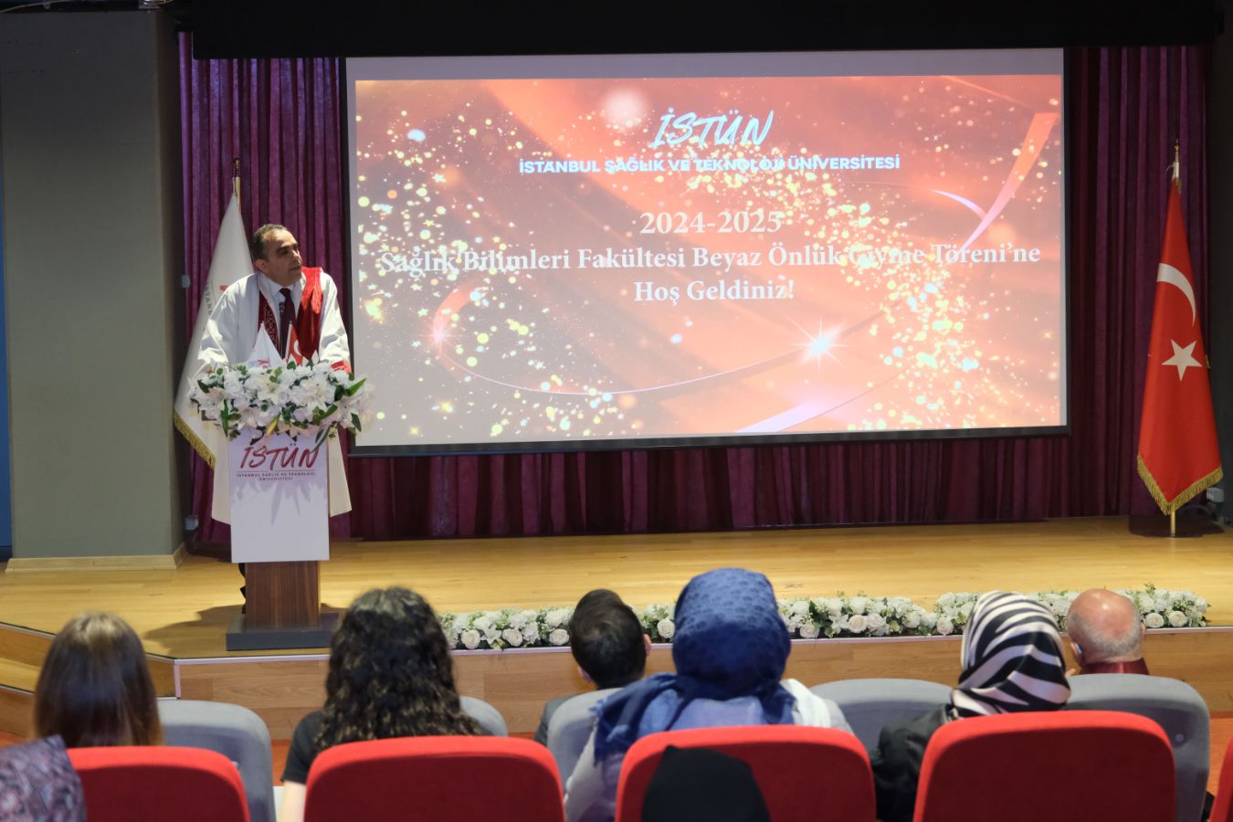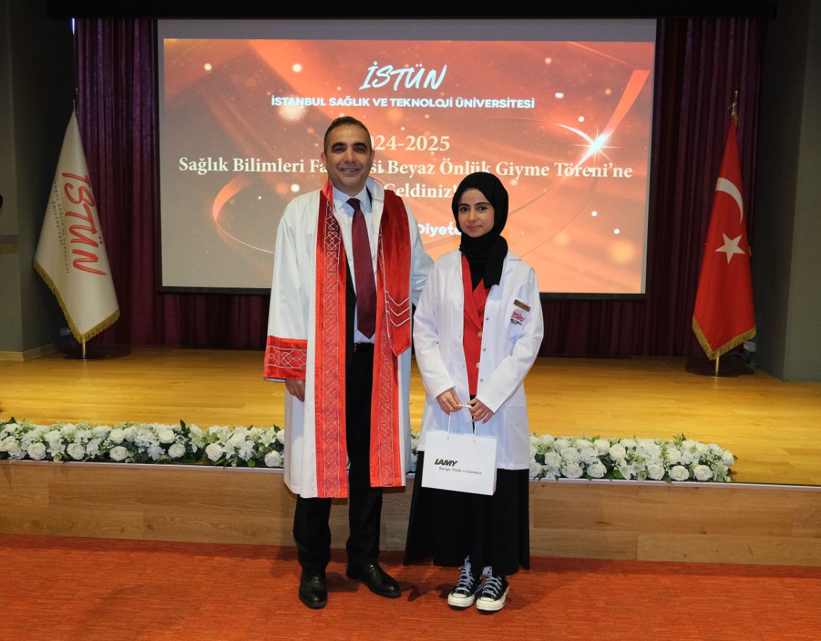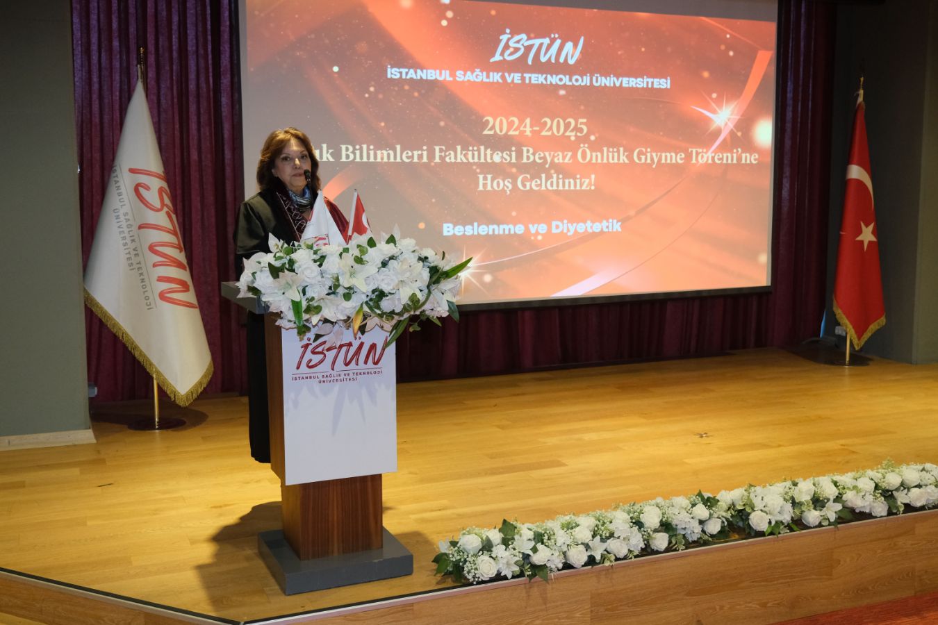 İstanbul Sağlık ve Teknoloji Üniversitesi (İSTÜN), 2024-2025 Akademik Yılı Sağlık Bilimleri Fakültesi Beslenme ve Diyetetik Bölümü Beyaz Önlük Giyme Töreni gerçekleşti. Öğrencilerimizin ve ailelerinin yoğun katılımı ile düzenlenen tören Sütlüce Kampüsü Oditoryumunda yapıldı. Törenin sunuculuğunu ise Tıp Fakültesi öğretim üyelerimizden Dr. Öğr. Üyesi Ömer Önder Önder üstlendi.