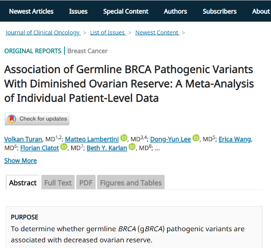 Tıp Fakültesi Öğretim Üyemiz Doç. Dr. Volkan Turan'ın Türkiye, İtalya, Belçika, Fransa, Güney Kore ve Amerika’yı içeren ve impact faktörü 33 olan “Germline BRCA Patojenik Varyantlarının Azalmış Yumurtalık Rezervi ile İlişkisi: Bireysel Hasta Düzeyindeki Verilerin Meta Analizi” çalışması Amerika Kanser Derneğinin resmi dergisi JCO' da yayımlandı.